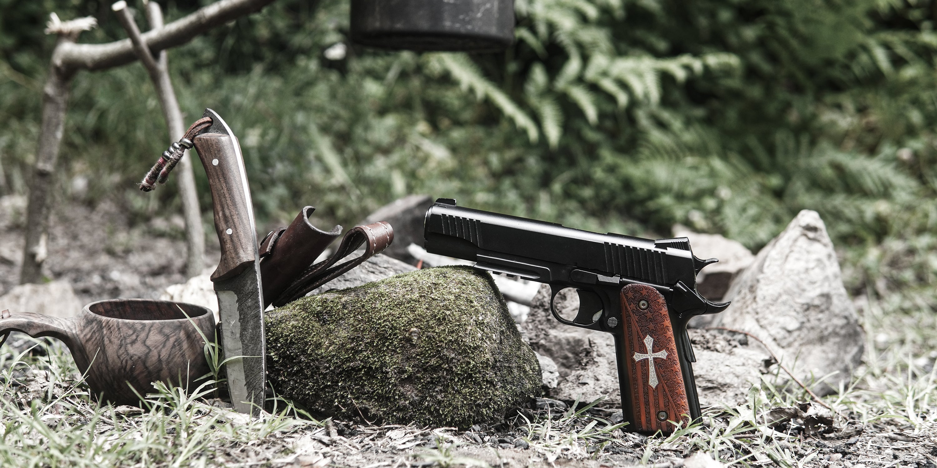 URAY 1911 Full Size CNC/Handcrafted hybrid American Flag and Christian Cross Wood Pistol Grips