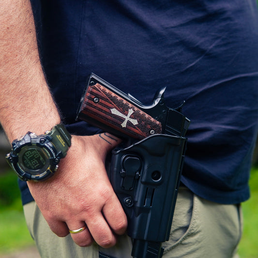 URAY 1911 Full Size CNC/Handcrafted hybrid American Flag and Christian Cross Wood Pistol Grips