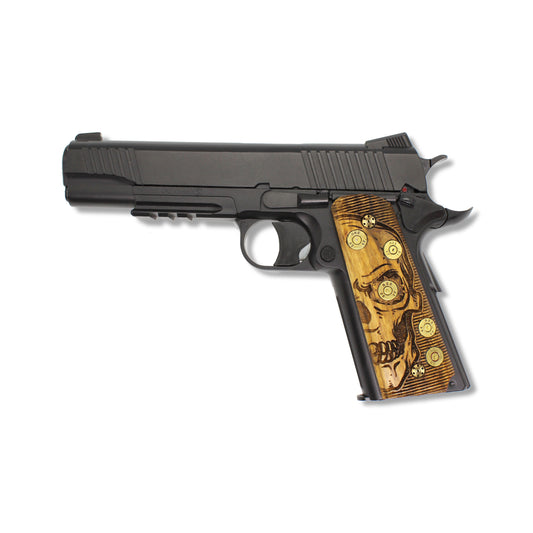 URAY 1911 Full Size Walnut Grips – Real Bullet Inlay & CNC Skull Carving – Handmade by Uray Pistol Grips – Unique Artisan Craft