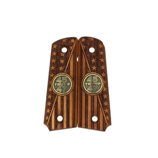 URAY 1911 Pistol Grip with 45-47 Trump Medallion and American Flag Design - Premium Pistol Grip Accessories for Colt Kimber Taurus Remington and All 1911 Models