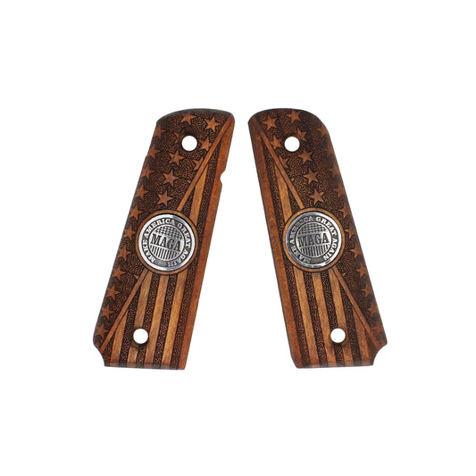 URAY 1911 Pistol Grip with MAGA Medallion and American Flag Design - Premium Pistol Grip Accessories for Colt Kimber Taurus Remington and All 1911 Models